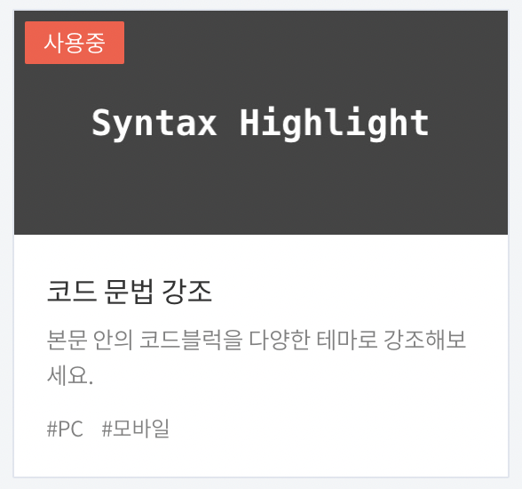 티스토리에 개발관련 글 작성 하실 때 코드블럭 사용해야하는 경우가 많습니다. 기본 테마로 할 경우에는 가독성이 좀 떨어져 한눈에 알아보기가 힘들기 때문에 코드블럭 테마를 변경해서 사용