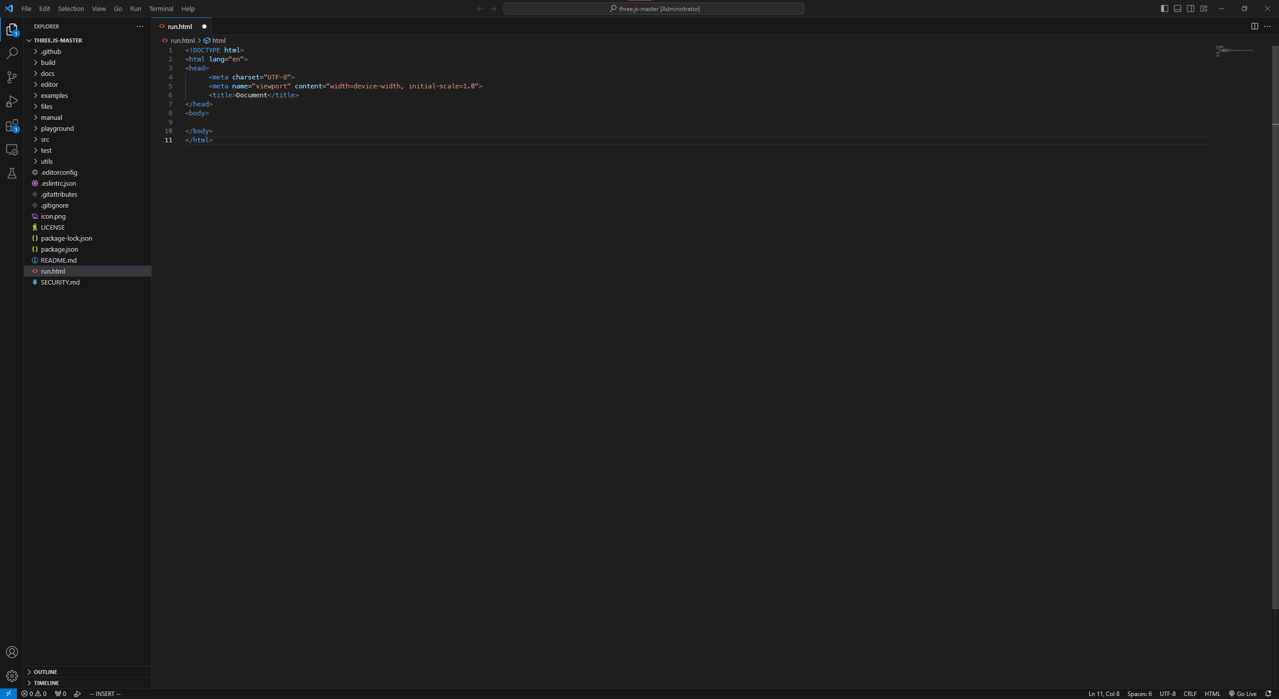 이렇게 Three.js 로 개발을 하기 위한 기본 셋팅이 끝났다.